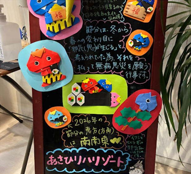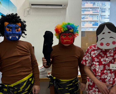 今月は節分があり、ご利用様と一緒に豆まきをしました。